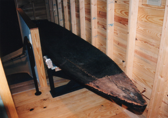 A boat used by well workers to paddle on top of oil ponds. I don't know why anybody would need to have a boat on an oil pond, but still kinda neat.
