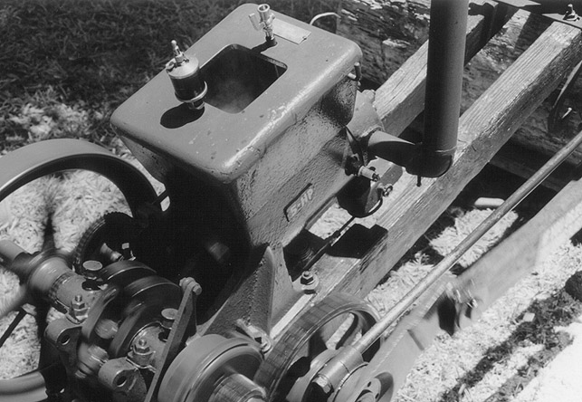 The motor driven saw had one huge piston that cranked out alota force. On top, is a resevoir that contains some type of gear oil that lubricates most all of the moving parts. When running, the machine shook so much that some oil would occasionally slurp out the top and splash all over the place. It almost appeared that it was designed to act this way. |